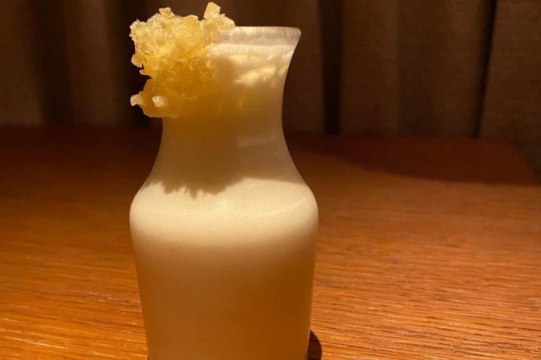 This is a photo of the lemon pepper chicken wing with mild sauce. It’s made with Don Julio Reposado, lemon super juice, black pepper, tobasco, monosodium glutimate, honey, butter, and house-smoked pop rocks.