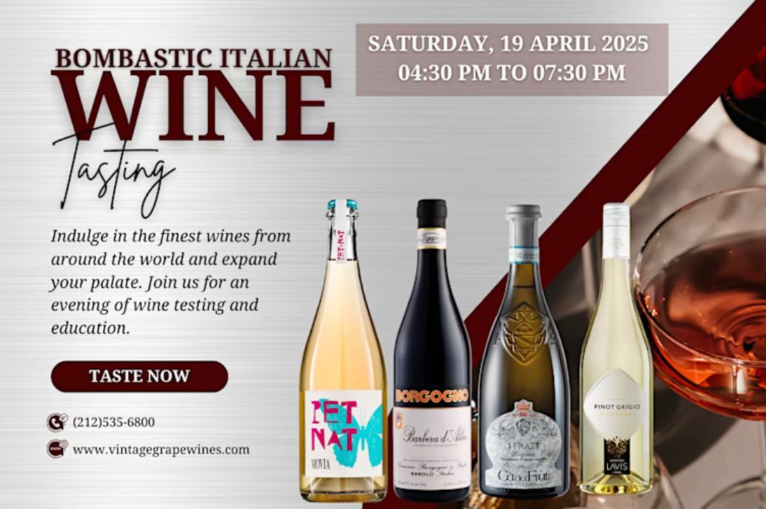Say ciao to a stunning lineup of Italian wines. Hosted at Vintage Grape Wine & Spirits in NYC, this event promises bold pours and plenty of character from Italy’s best regions.
