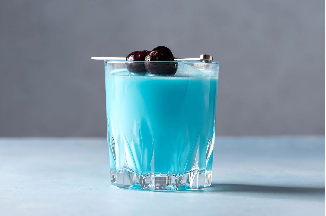 This bright blue cocktail has a fruity, creamy kick from tequila, blue curaçao, and white crème de cacao. It’s a tropical pick-me-up for gloomy winter days.