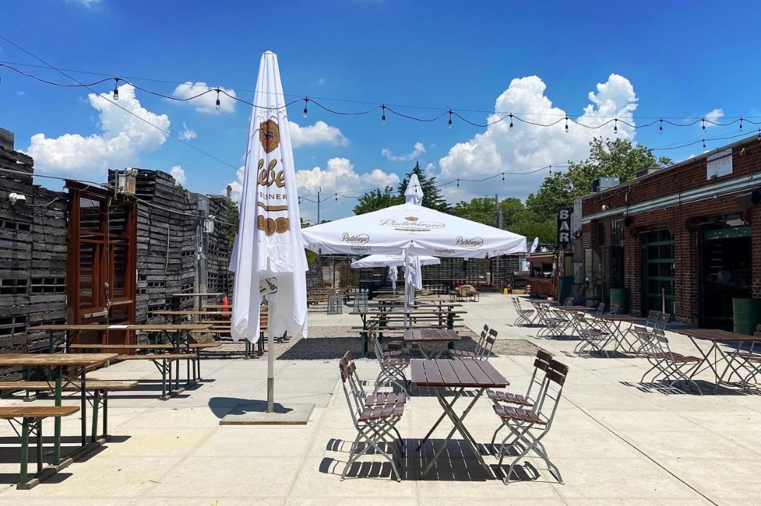 A true German-style beer garden with leafy backyard seating, wooden benches, and imported Hofbräu-style mugs. With 12 German beers on tap, pricing-friendly frosés and frozen margs, and hearty sausages, it channels Munich-meets-NYC both summer and winter.