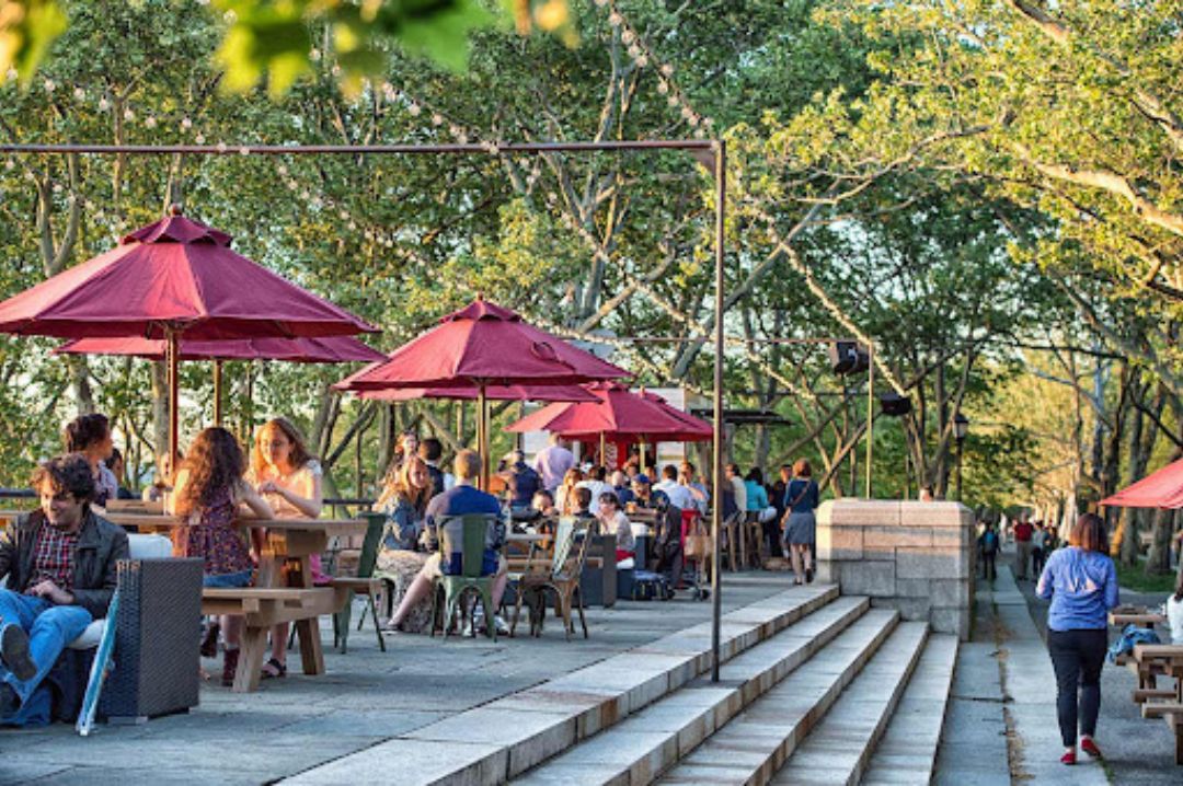 Tucked into Riverside Park overlooking the Hudson, Ellington in the Park feels like summer camp for grown-ups. Two-tiered terraces spill out beneath leafy canopies, with craft beers, sangria, and pub-style snacks flowing all day. Breezy, casual, and full of neighborhood charm, it’s where you go when you want the city—and a break from it—in the same glass.