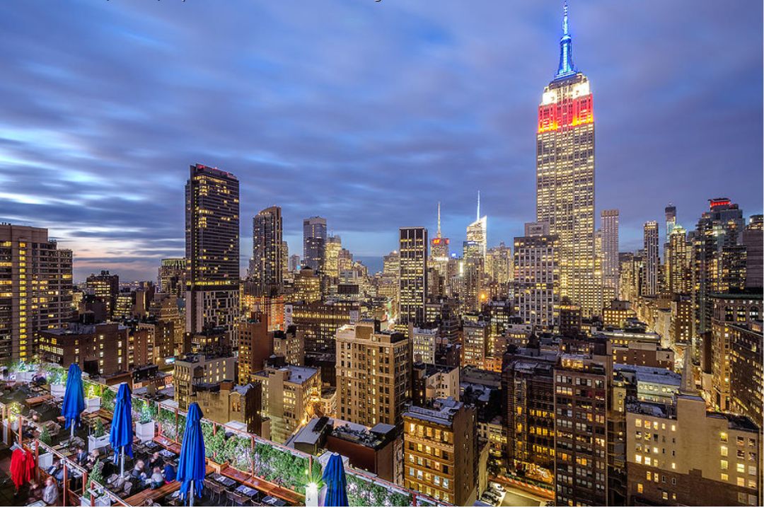 This Flatiron favorite is one of NYC’s most iconic rooftop bars, just a short walk from the Empire State Building. With a sprawling outdoor terrace and a cozy indoor lounge, 230 Fifth is a year-round destination. Whether you’re sipping cocktails under the stars or enjoying the heated igloos in winter, the skyline views never disappoint.
