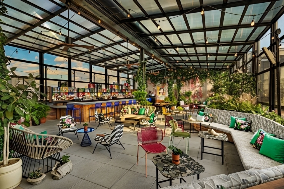 Bringing a playful, house-party vibe to the East Village, The Ready features string lights, colorful decor, and beer cans chilling in coolers. A retractable roof ensures you can enjoy the space in any season, making it a great pick for casual drinks with friends.